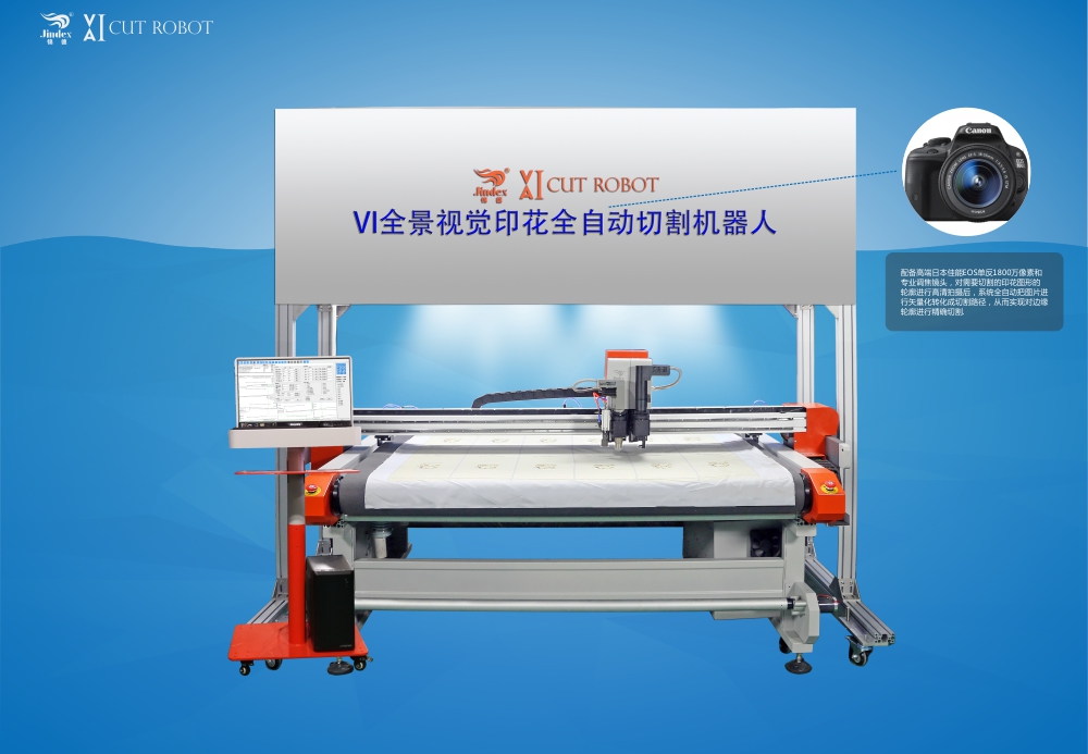 3.Jindex self-developed CCD SLR camera panorama vectoring system, equipped with high-end Canon EOS SLR 18 million pixels and professional focus lens, the contour to be cut after printing graphics HD shooting, the picture fully automatic system The vectorization is transformed into a cutting path to achieve precise cutting of the edge contour.
