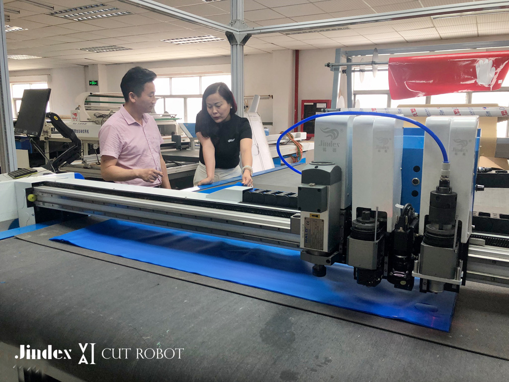 朱媧秘書長(zhǎng)一行人在錦德?tīng)I(yíng)銷總監(jiān)張景琳女生等公司領(lǐng)導(dǎo)的陪同下,深入?yún)⒂^了錦德智能切割設(shè)備演示廳與生產(chǎn)1-3車間,詳細(xì)了解了公司的發(fā)展歷程。對(duì)于錦德智能裁切設(shè)備在此次新冠疫情防控工作中所起到的重要作用,給予了高度肯定。