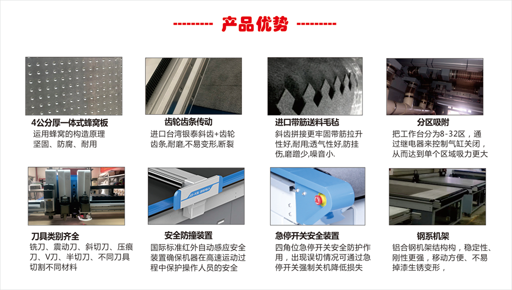 2、裁剪精度高,自動化裁布機(jī)擁有智能誤差補(bǔ)償系統(tǒng),重復(fù)切割0誤差。